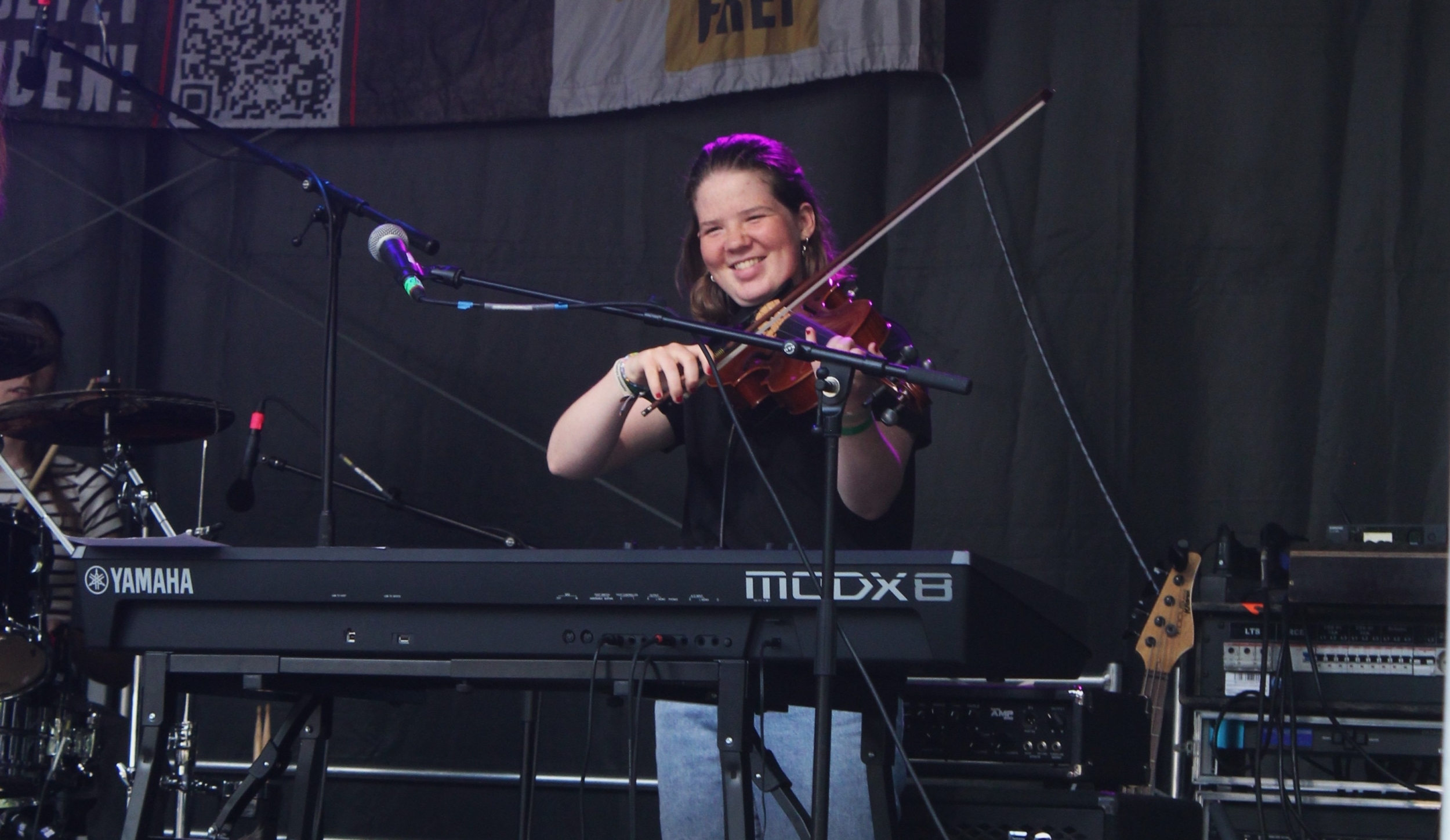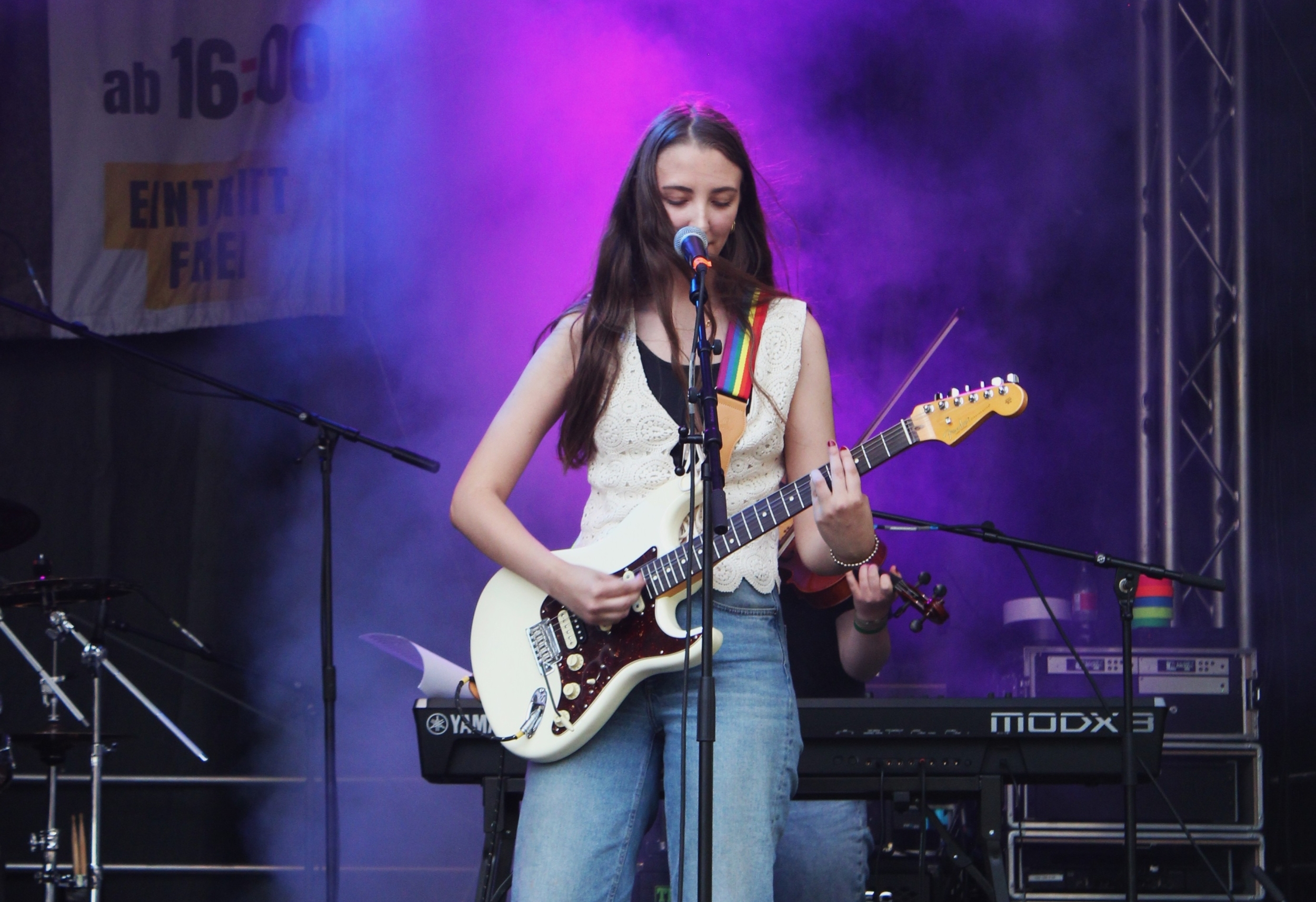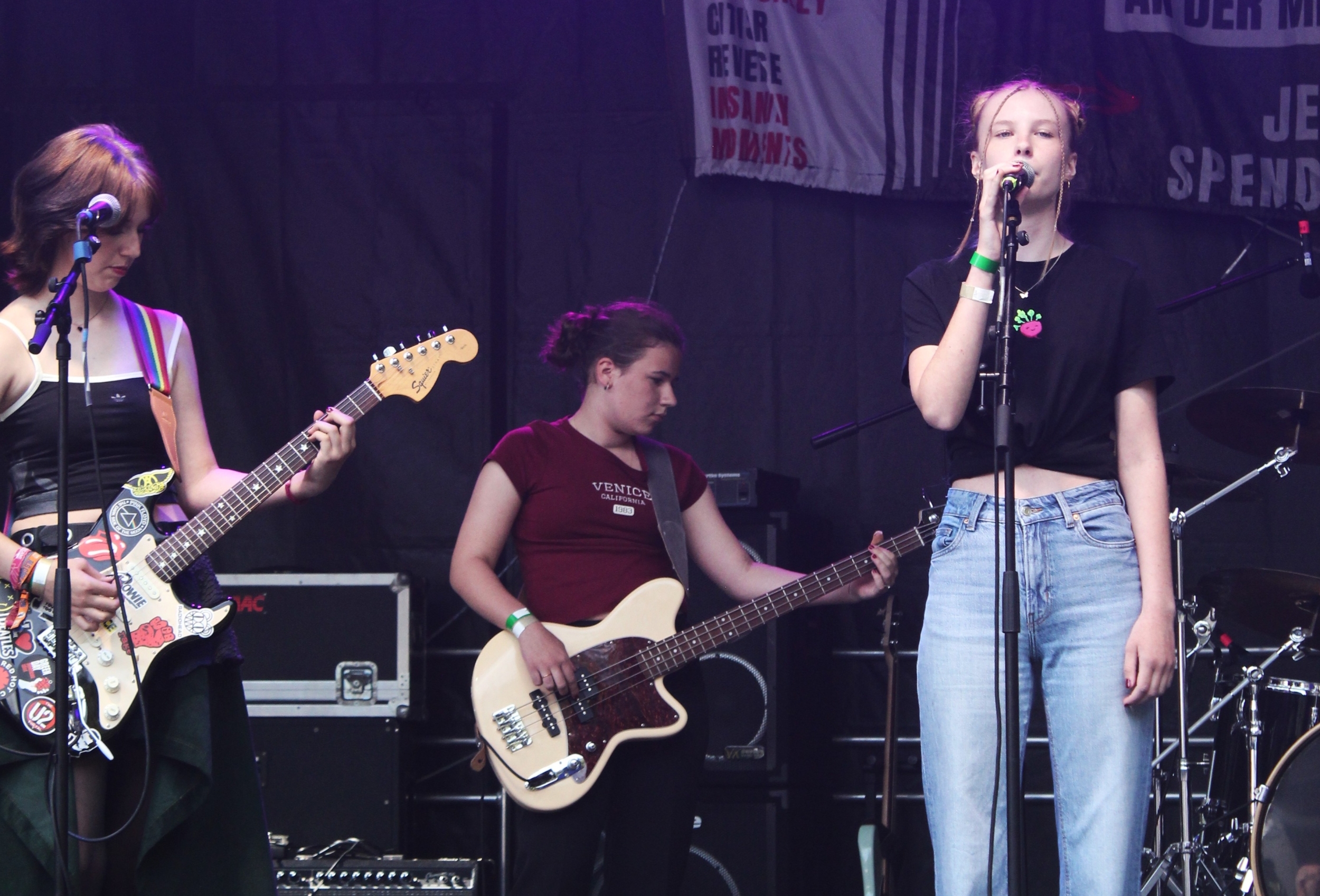 Direkt danach war die zweite Band vom Kepler-Gymnasium am Start, die „Rebel Radishes“, das sind Merle Fischer (Drums), Antonia Hungermann (Bass), Lisanne Breitsprecher (Gitarre), Franka Brinkmann (Gitarre), Nele Gill (Gesang), Luisa Möller (Keyboard & Bratsche), alles Schülerinnen der jetzigen EFd. Auch sie gaben alles und rockten die Bühne des Festivals. Man merkt, dass diese Band einfach gerne zusammen spielt.