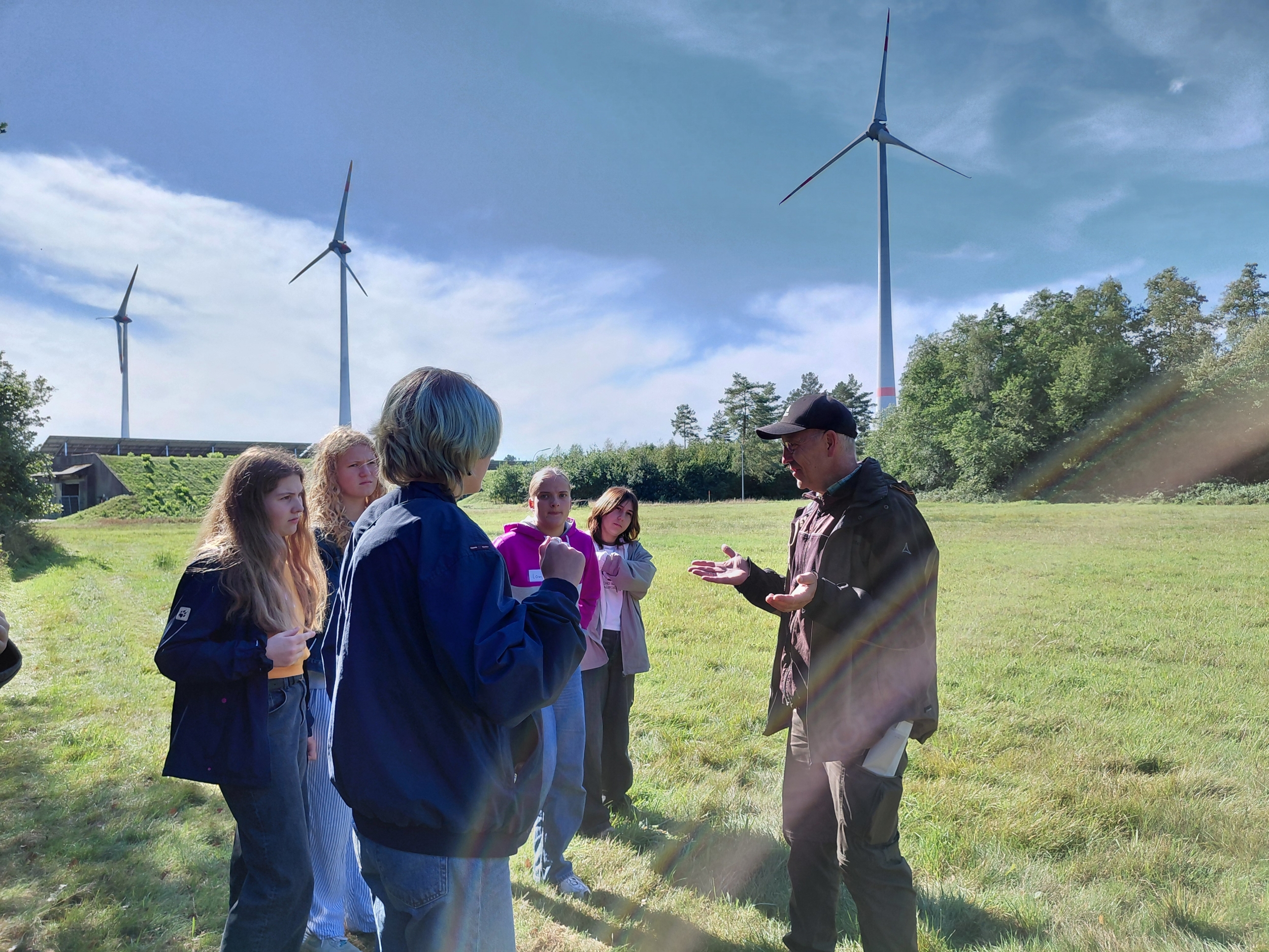 Nach einem Imbiss ging es in die Wildnis des Bioenenergieparks. Die Schülerinnen entdeckten, welche Tiere und Pflanzen im Park leben und geschützt werden. Aber auch über die Bodenbeschaffenheit des Parks oder die Anfänge eines nachhaltigen Bewusstseins in Deutschland wurde aufgeklärt. Den „ökologischen Fußabdruck“ konnte danach jeder individuell berechnen, gleichzeitig wurde auf die Problematik des Abdrucks hingewiesen und auf den positiver besetzen „ökologischen Handabdruck“.