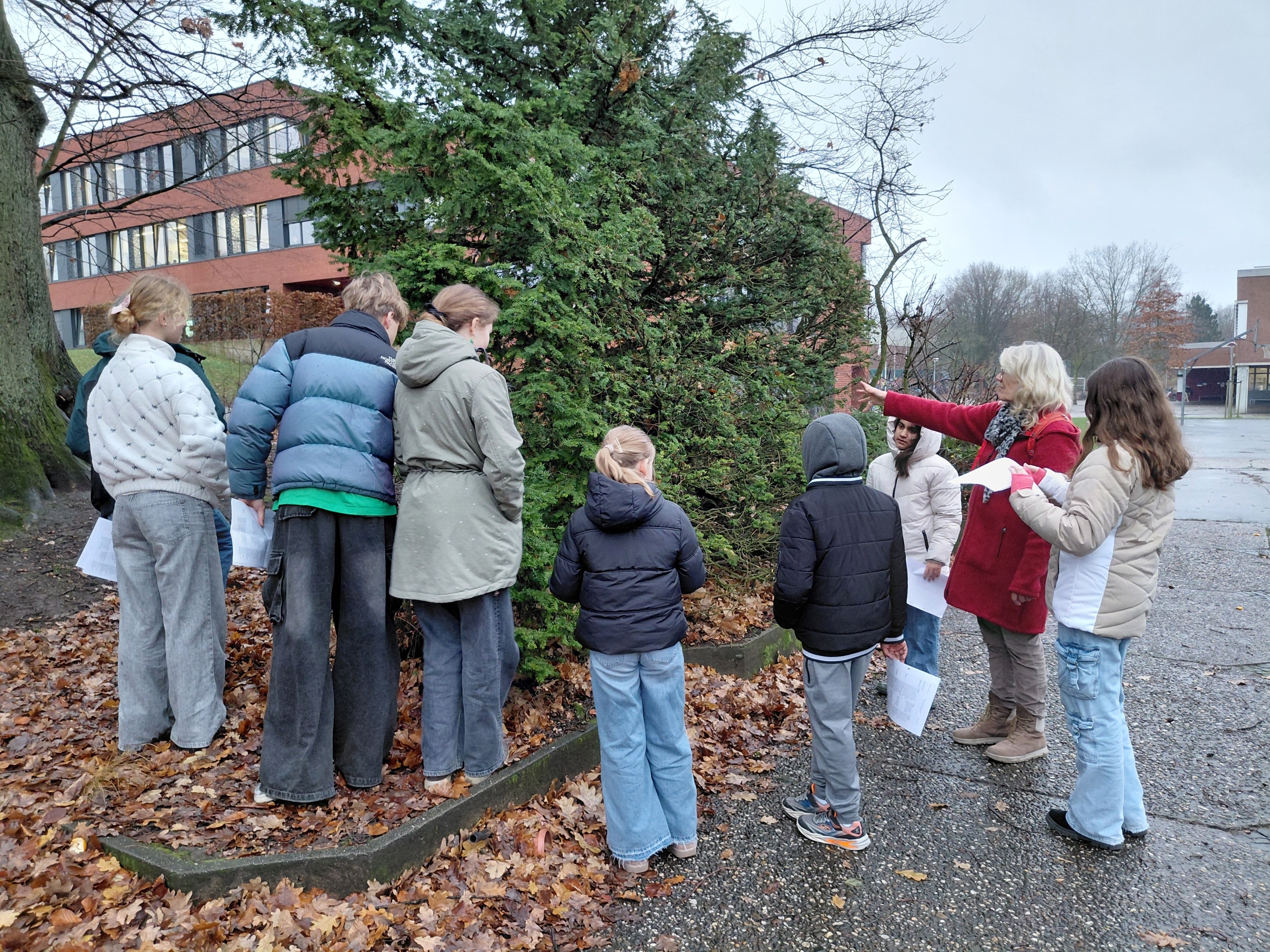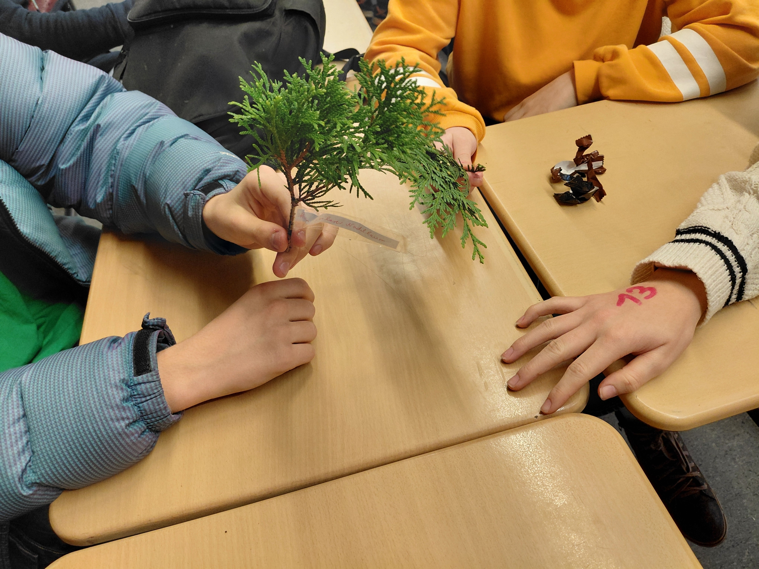 Achtung: Auf dem Schulhof steht eine Eibe, die der Tanne sehr ähnlich sieht, aber nicht zum Verzehr bestimmt ist - giftig!