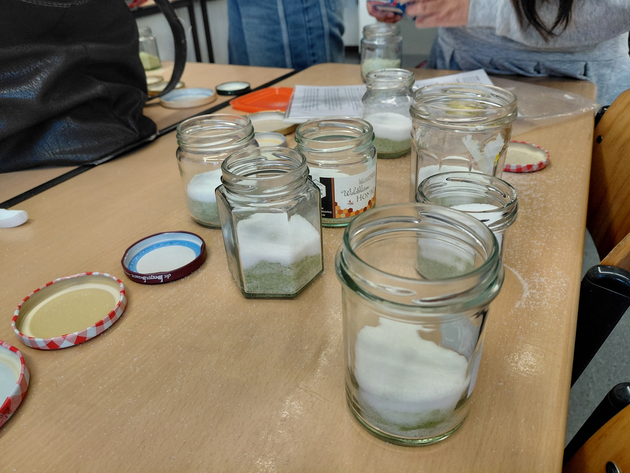 Angeleitet wurden die Schülerinnen und Schüler von Christiane Glöckner, die nicht nur eine ehemalige Lehrerin des Keplers ist, sondern auch Wildpflanzenexpertin und Coach für essbare Wildpflanzen. Sie brachte der AG zunächst anschaulich einige Nadelbäume und deren Besonderheiten nahe. So fand man in der Nähe der Schule eine Tanne, deren Nadeln die Schüler gebrauchen konnten. Sie sammelten die Woche über weitere Nadelbaumnadeln, sodass in der darauffolgenden AG-Stunde die Nadeln zu feinem Pulver gemahlen, mit Speisesalz vermischt und abgefüllt wurden. Fertig war das "Waldbad", das wohltuend, stärkend sowie lindernd wirken und sogar als Peeling oder Speise-Würzsalz verwendet werden kann.