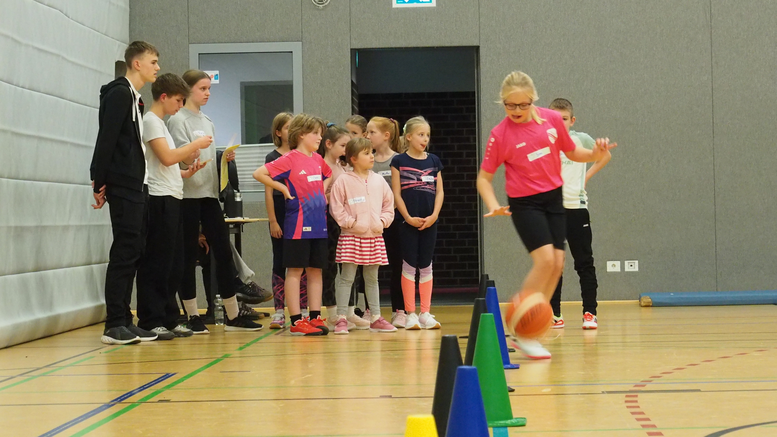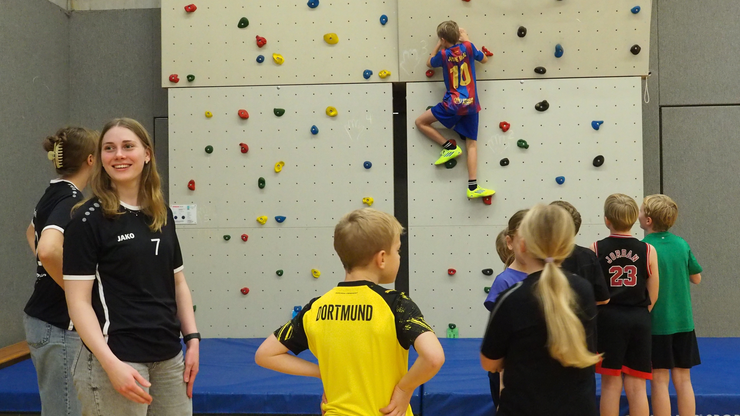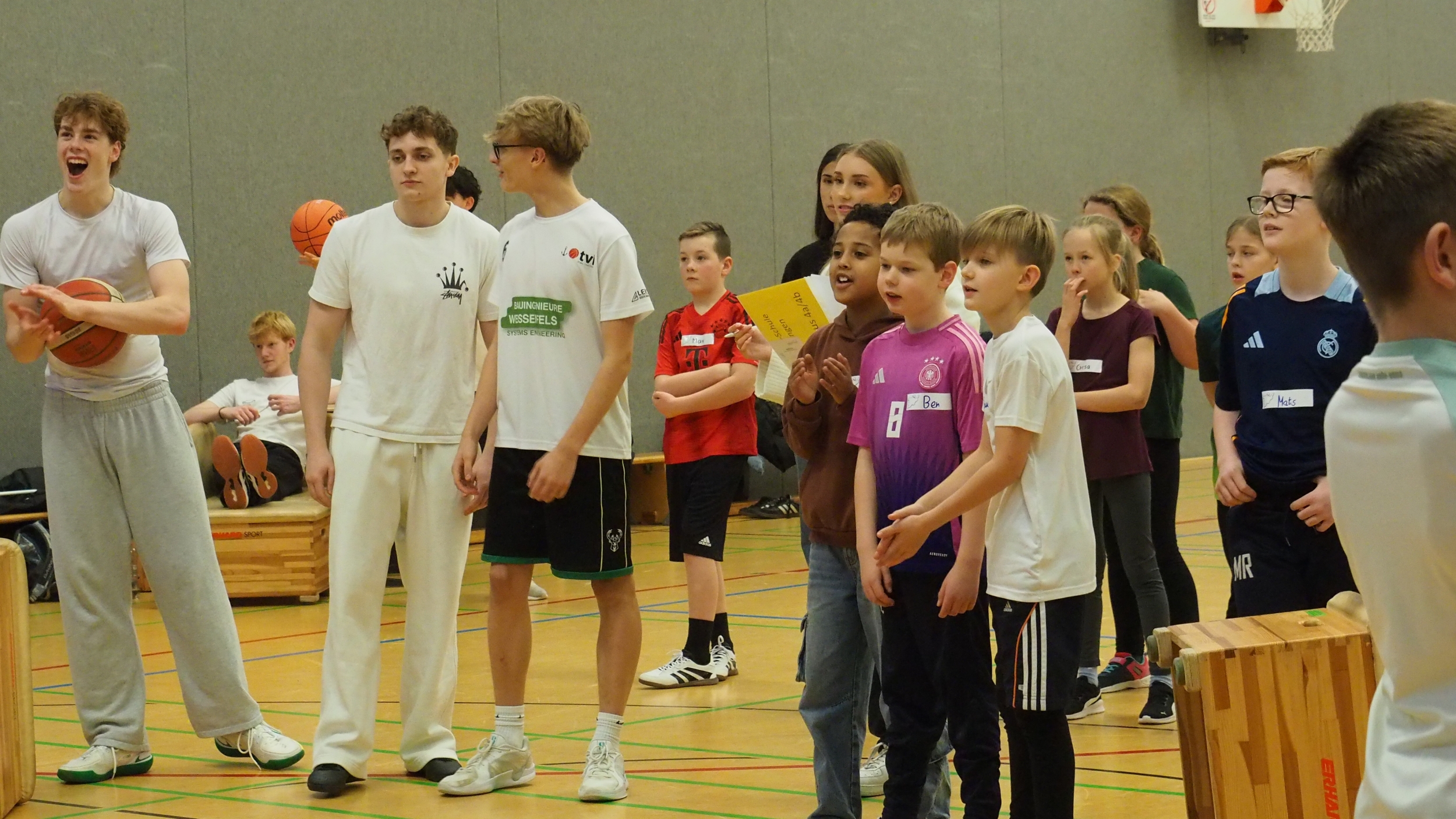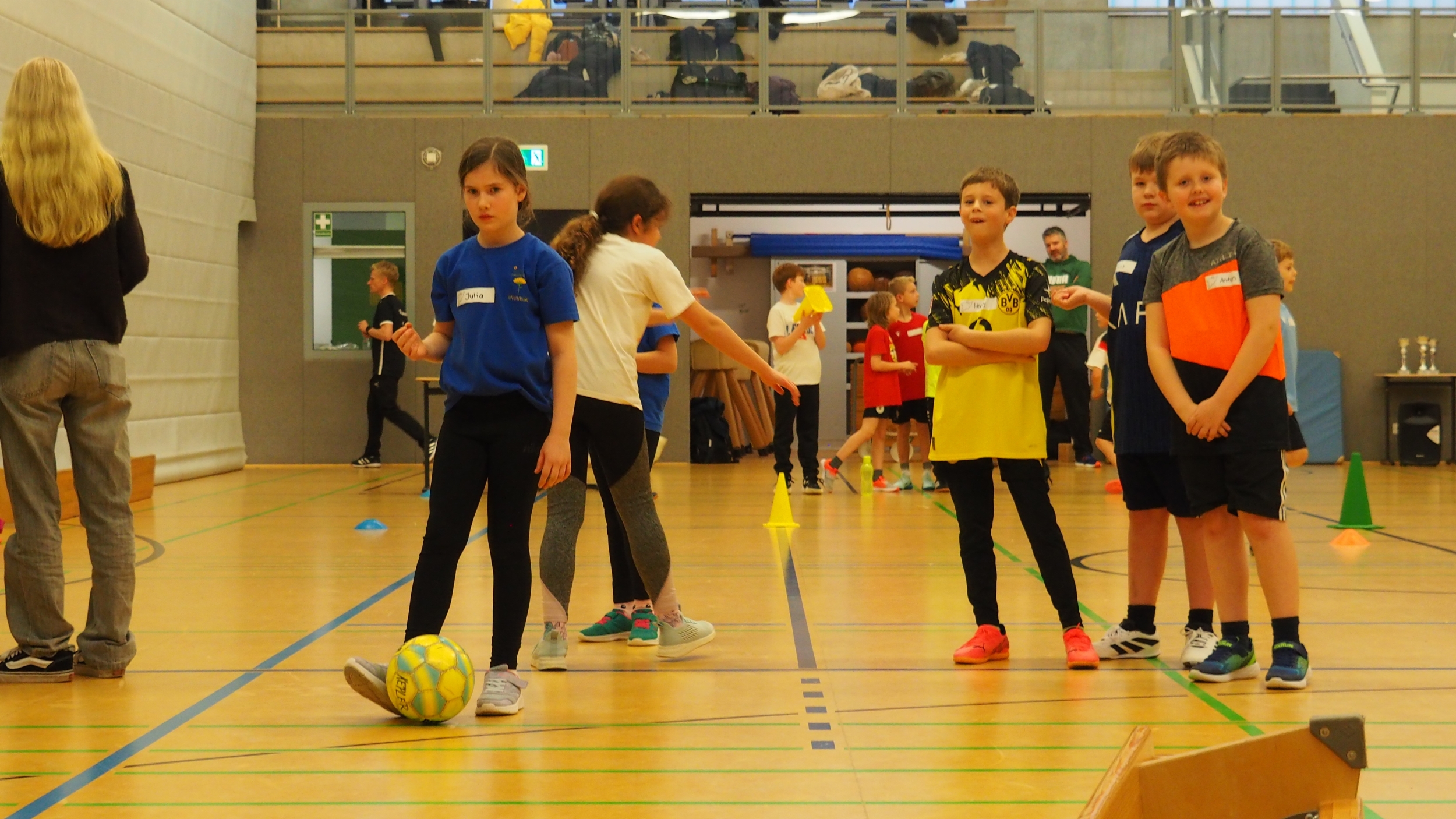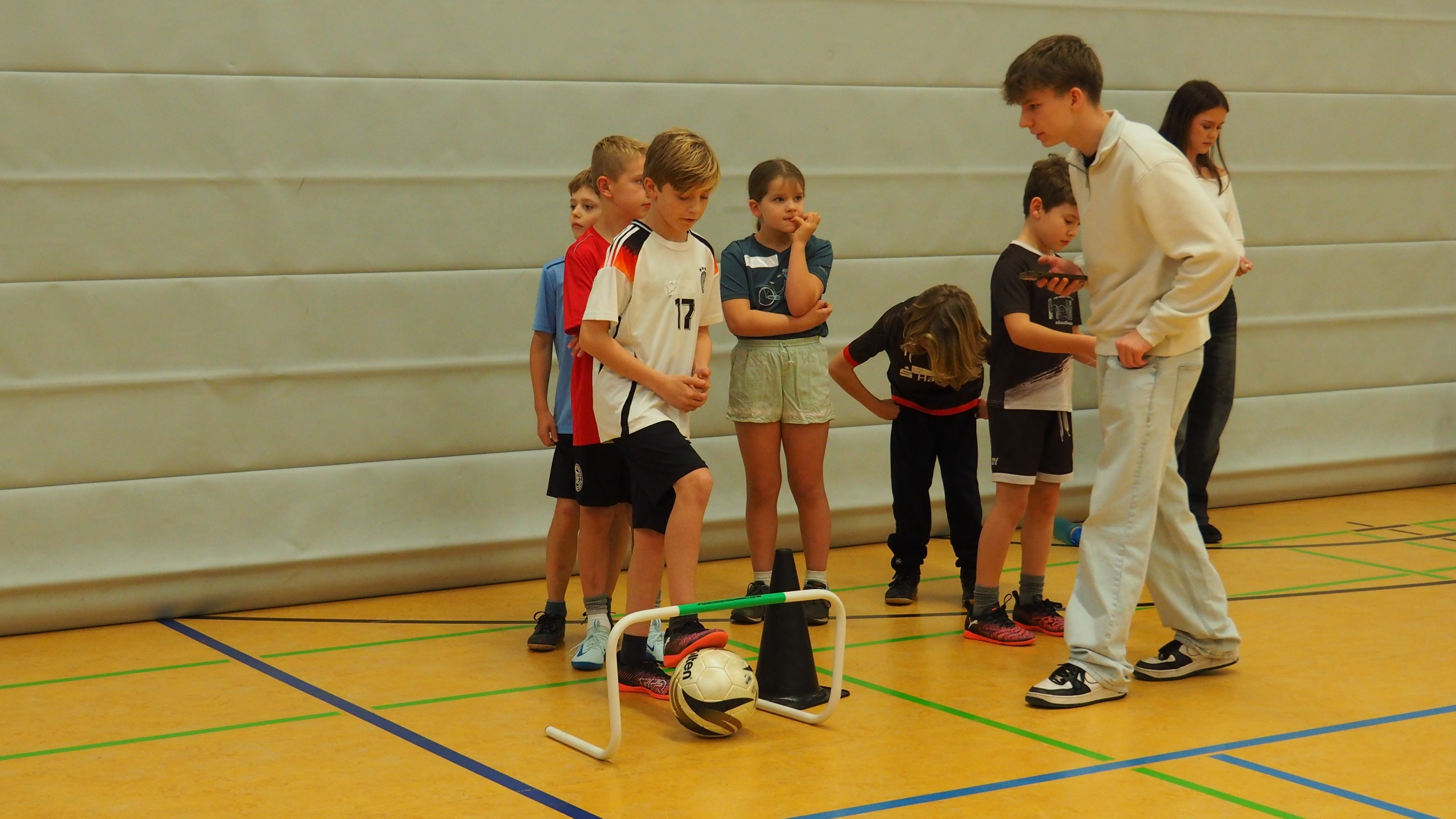 Die Sporthalle des Johannes-Kepler-Gymnasiums verwandelte sich dafür in eine spannende Arena voller Herausforderungen: Basketball, Fußball und ein kniffliger Abenteuerparcours. Hier konnten die Kinder verschiedene Bewegungsformen ausprobieren und sich sportlich austoben. Jedes Hallendrittel bot eine neue, fesselnde Herausforderung, die den jungen Sportlern alles abverlangte und sie zu Hochleistungen anspornte. Unterstützt wurden sie dabei von unseren hilfsbereiten Oberstufenschülerinnen und -schülern.
