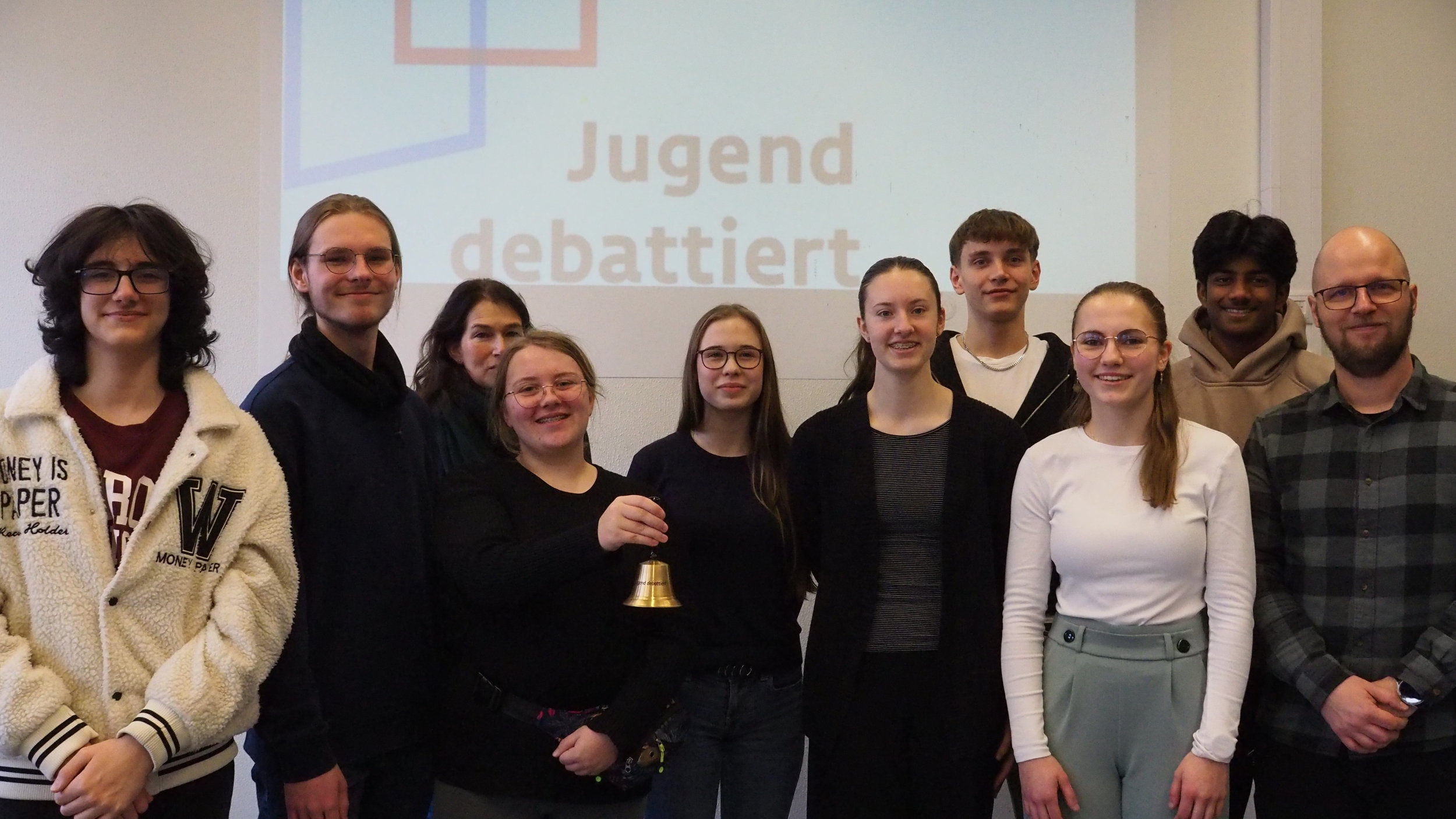 In der anschließenden Finalrunde stand mit der Frage „Soll es eine allgemeine Dienstpflicht für Jugendliche geben?“ ein gesellschaftlich hochaktuelles Thema im Mittelpunkt. Zwischen den Positionen, dass eine solche Pflicht den gesellschaftlichen Zusammenhalt stärken könne, und der Gegenauffassung, sie stelle einen unzulässigen Eingriff in die individuelle Freiheit junger Menschen dar, entwickelte sich eine sprachlich wie inhaltlich anspruchsvolle Debatte. Am Ende konnte sich Fenja Mutert (10c) knapp als Schulsiegerin durchsetzen. Den zweiten Platz belegte Felicitas Wenning (10b), gefolgt von Thea Hummel (10a) auf dem dritten Platz; Lennard Heidrich (10a) erreichte den vierten Platz.
