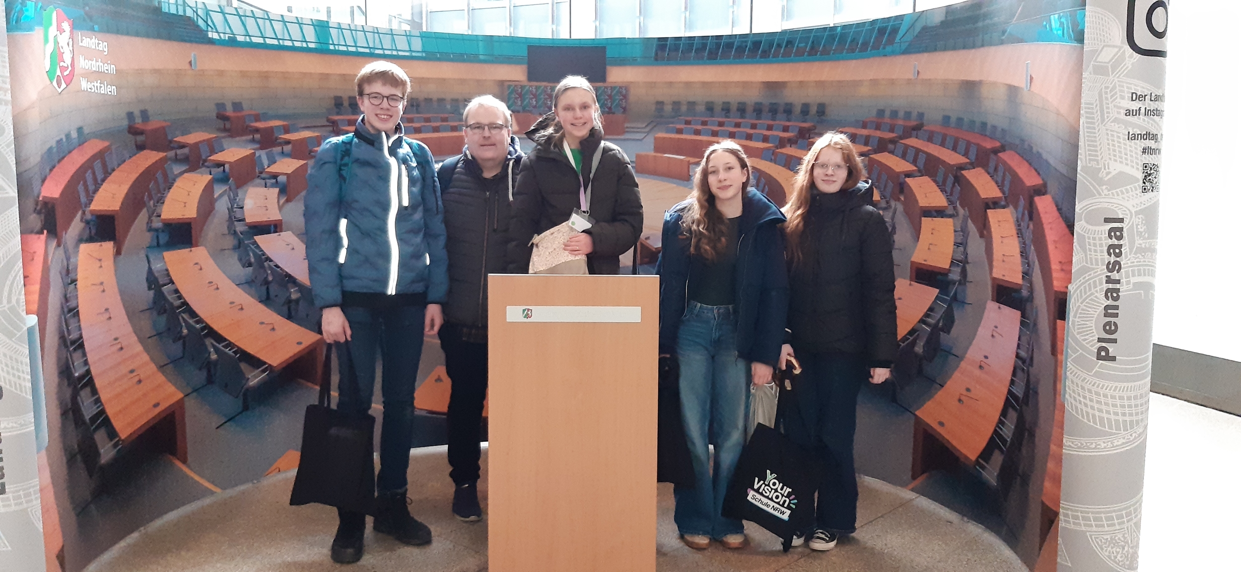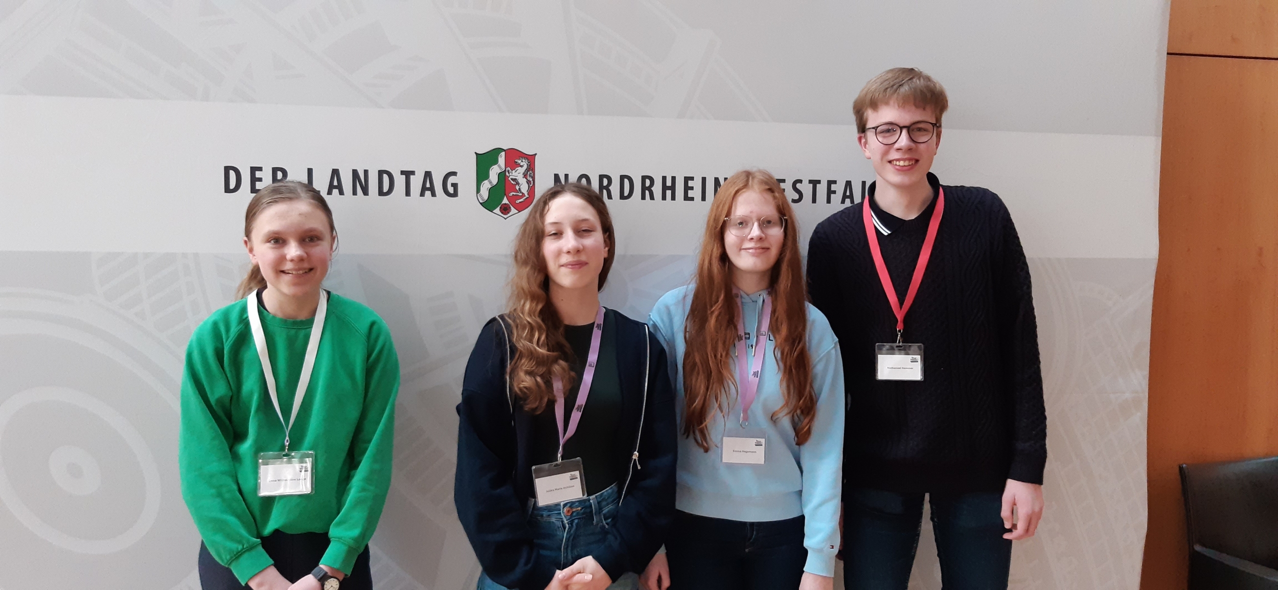 Im Dezember bekamen wir dann die Nachricht, die Ideen des Keplers seien recht gut und wenn wir unsere Ergebnisse an den Landtag in Düsseldorf weitergäben, wäre es wahrscheinlich, dass wir dorthin eingeladen würden, um unsere Ergebnisse unter anderem Schulministerin Dorothee Feller und Frank Hinte mitzuteilen. Das freute uns natürlich alle sehr.